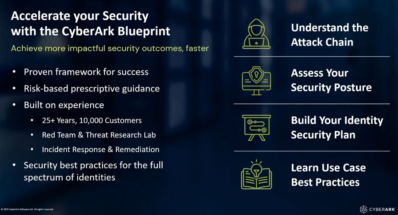 如果想要持續掌握身分安全的最新發展動向,霍超文推薦他們提供的兩種資源,首先是前面提到的CyberArk Blueprint,可提供具體落實身分安全的細部作法,而且會定期更新,客戶可自己使用,若需要協助,可洽詢CyberArk的合作夥伴,全球四大會計師事務所也都會參考這當中提到的概念,各自發展相關的策略。