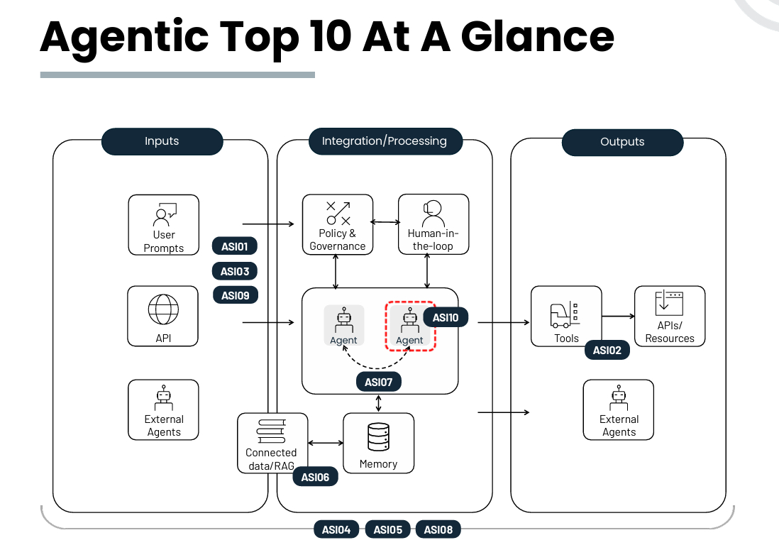 這是指由於 AI代理(Agents)具備自主執行能力,但AI代理無法透過可靠的方式區分合法指令,因此存在固有安全弱點,這就讓攻擊者有可乘之機,可透過多種手法操縱代理的目標、任務選擇或決策路徑。例如,透過惡意提示詞(Prompt)、偽造工具輸出或污染資料——進而改變代理的決策與行為。