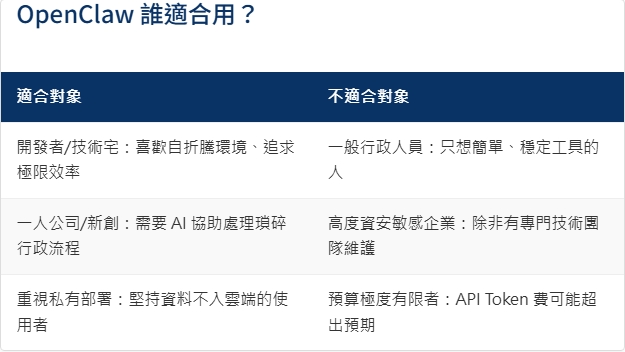 真正的自動化:不同於ChatGPT只能給你建議,OpenClaw可以幫你「執行」。例如:「幫我把這封信摘要後存入我的 Notion 並提醒我明天回覆。」